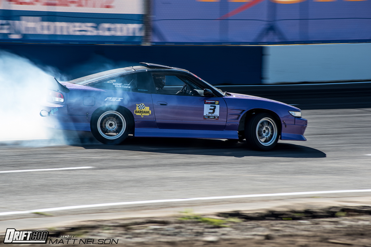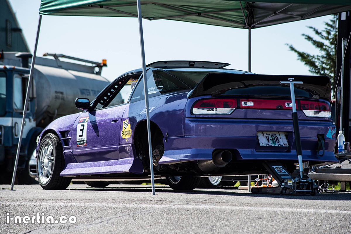 His SR20DET-powered 240sx is an extremely capable car. A turbo 4 cylinder is a rare choice for an engine these days (even for ProAm) but Arie hopes to inspire others with the simplicity of his setup. With a strong backing from Portland Speed Industries and former FD driver Kyle Pollard serving as his crew chief, Arie has years of knowledge and experience already in his program.