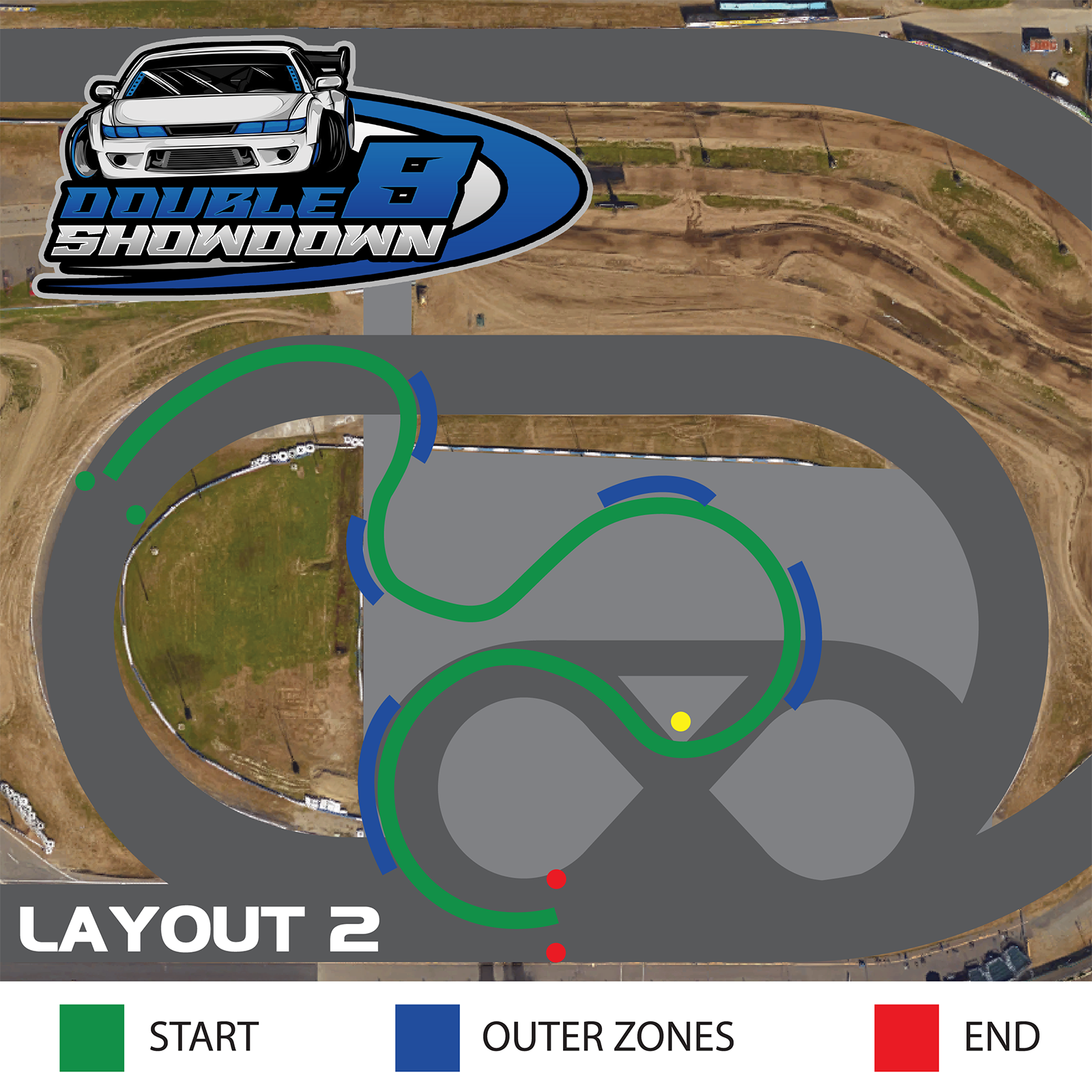 After all early brackets have been finished, we will have a short break and allow Drift Games or Team Tandem on track for practice. The Final 8 should mentally prepare for the layout change. There will be no practice on Layout 2 before moving into competition. The only opportunity for practice on LAYOUT 2 will be on the designated Friday practice day.