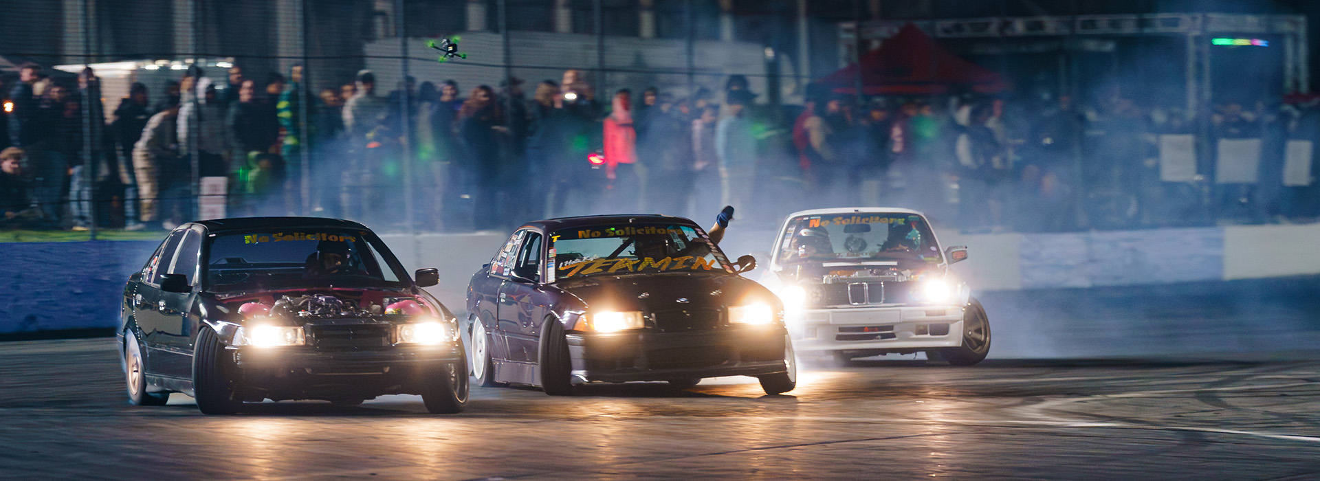 Team Tandem is NOT judged like normal drifting competition. Judges will be focusing on proximity and overall team skill. Teams should be trying to drive within arm’s reach of one another. Drivers should be on the same line, with matching style and form. While line, style, angle, and excitement will all continue to be judged factors, what we really want to see is synchronized style and performance. The lead driver is responsible for laying down the best line and the follow cars are to follow the lead driver and keep in as close proximity and uniformly as possible.